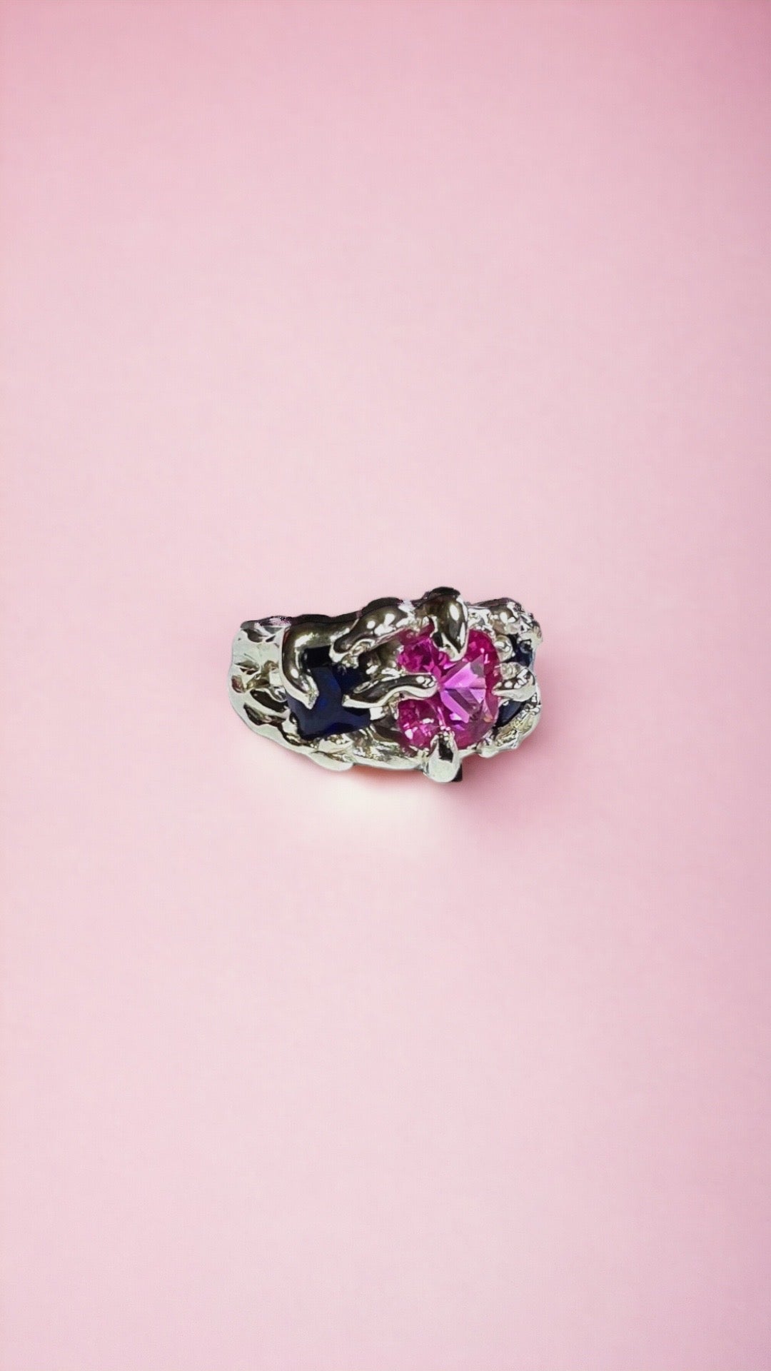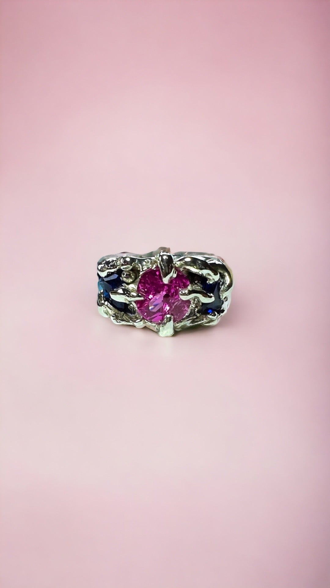 Pink Ruby accompanied by two Royal Blue Sapphires held together in a Sterling Silver Crown of Thorns π₯