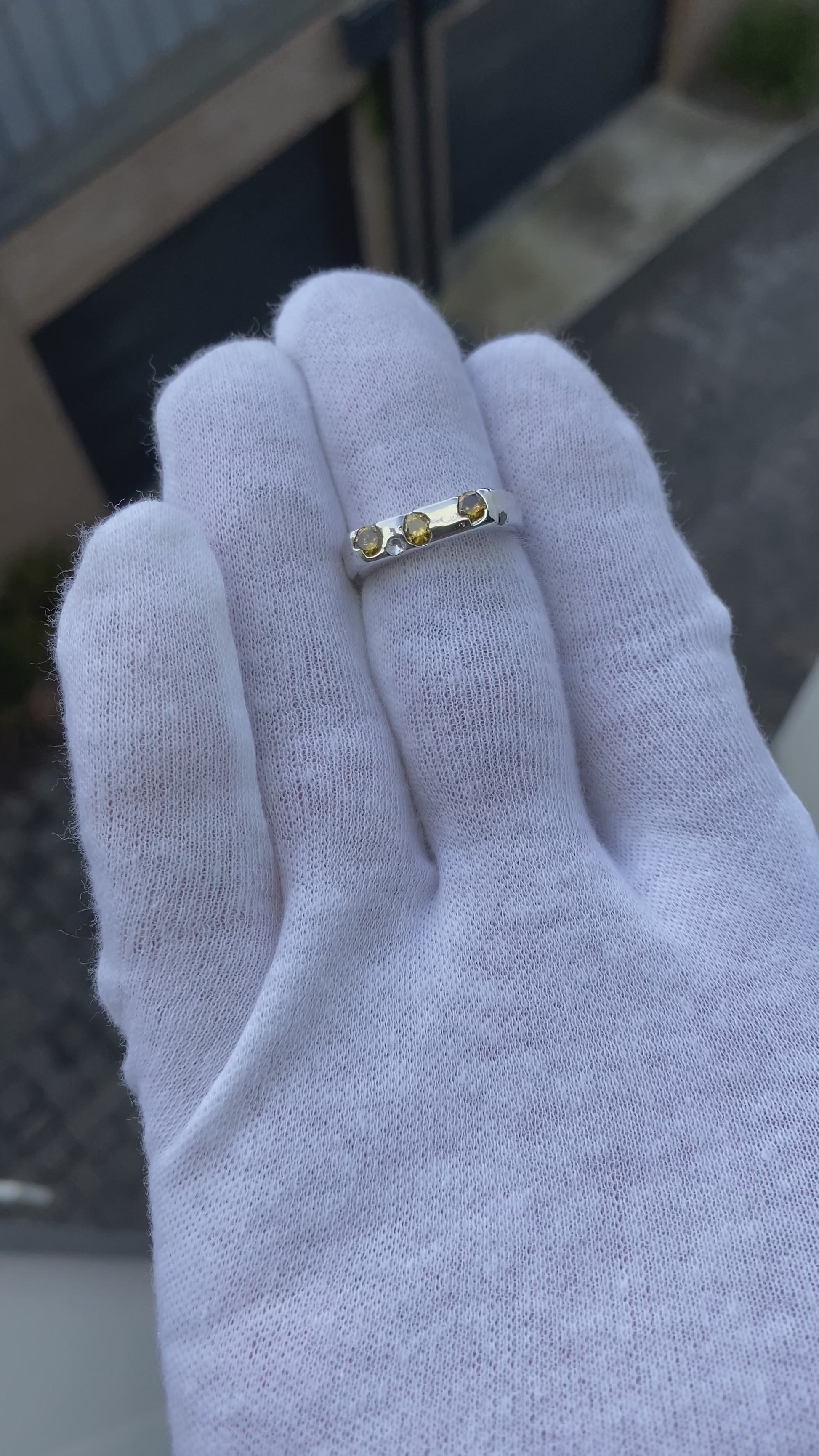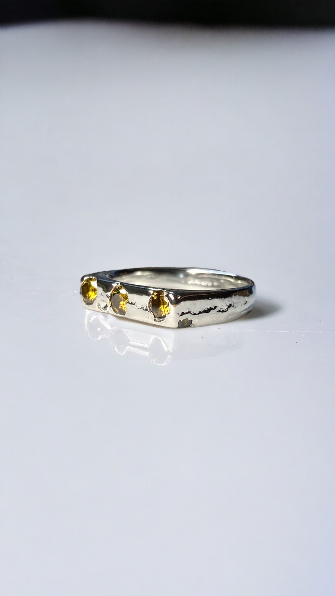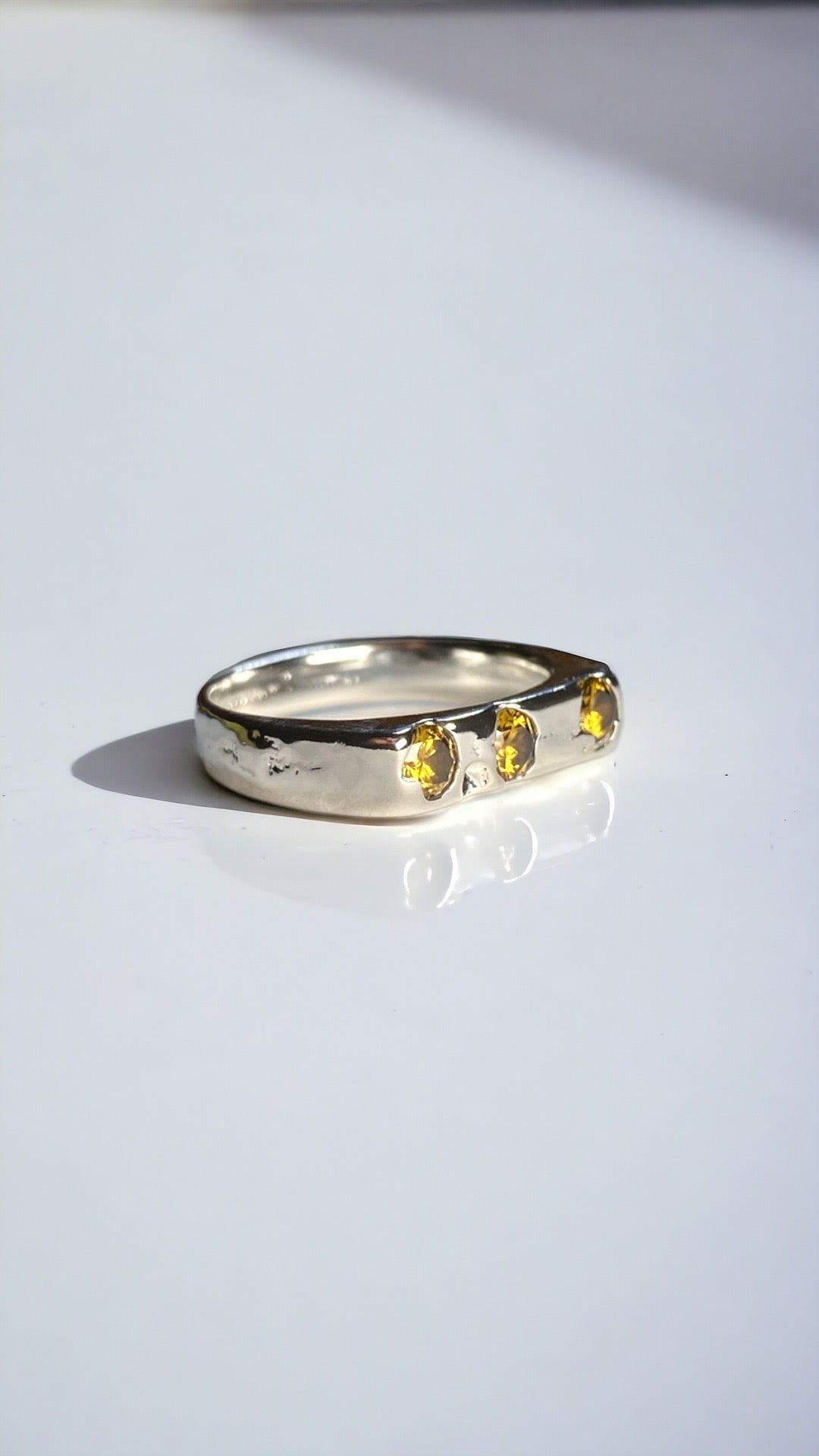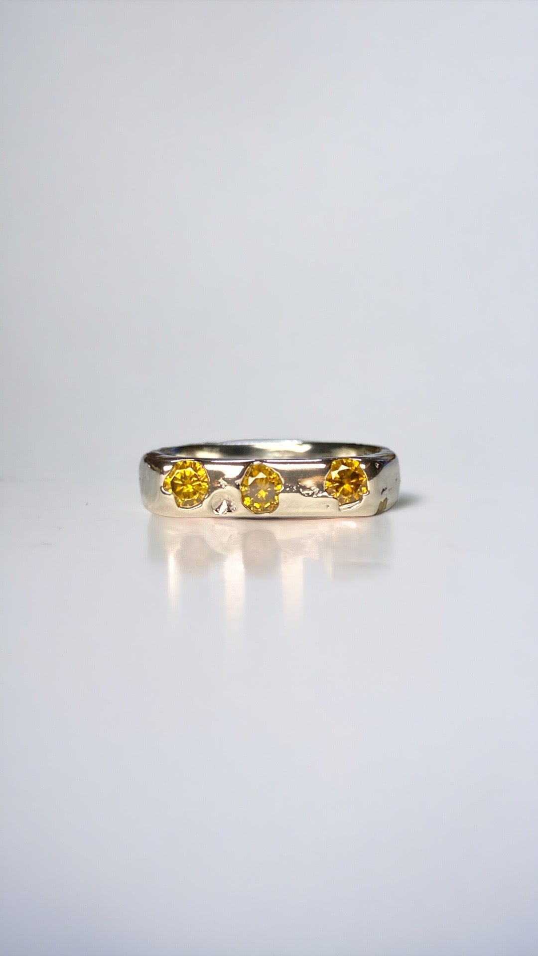 Lemon yellow cubic zirconias encased in a sleek hand poured sterling silver signet