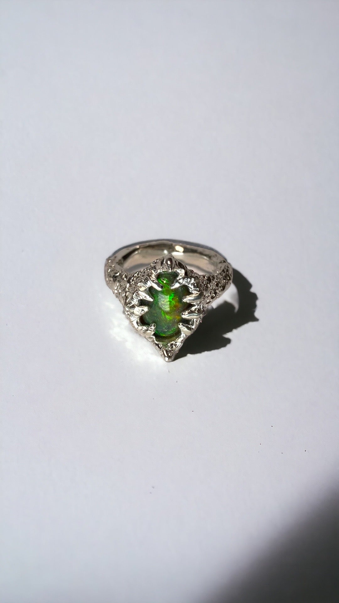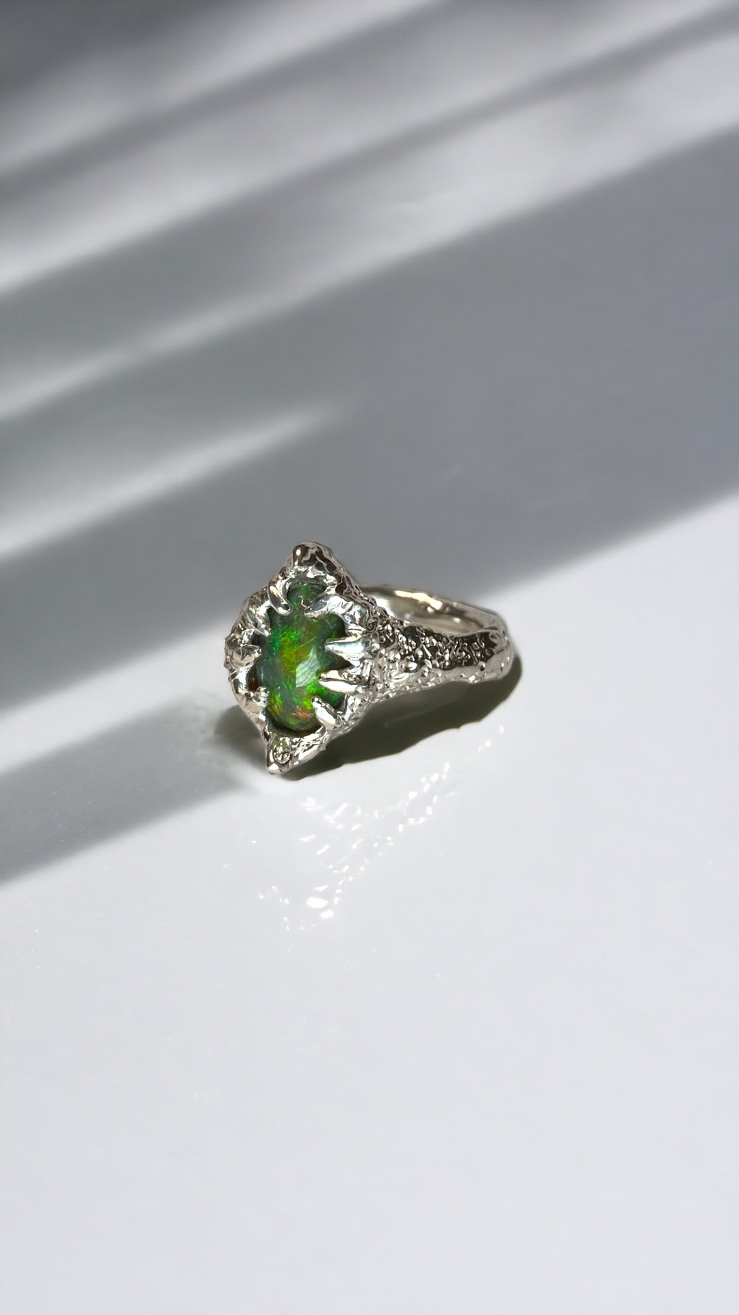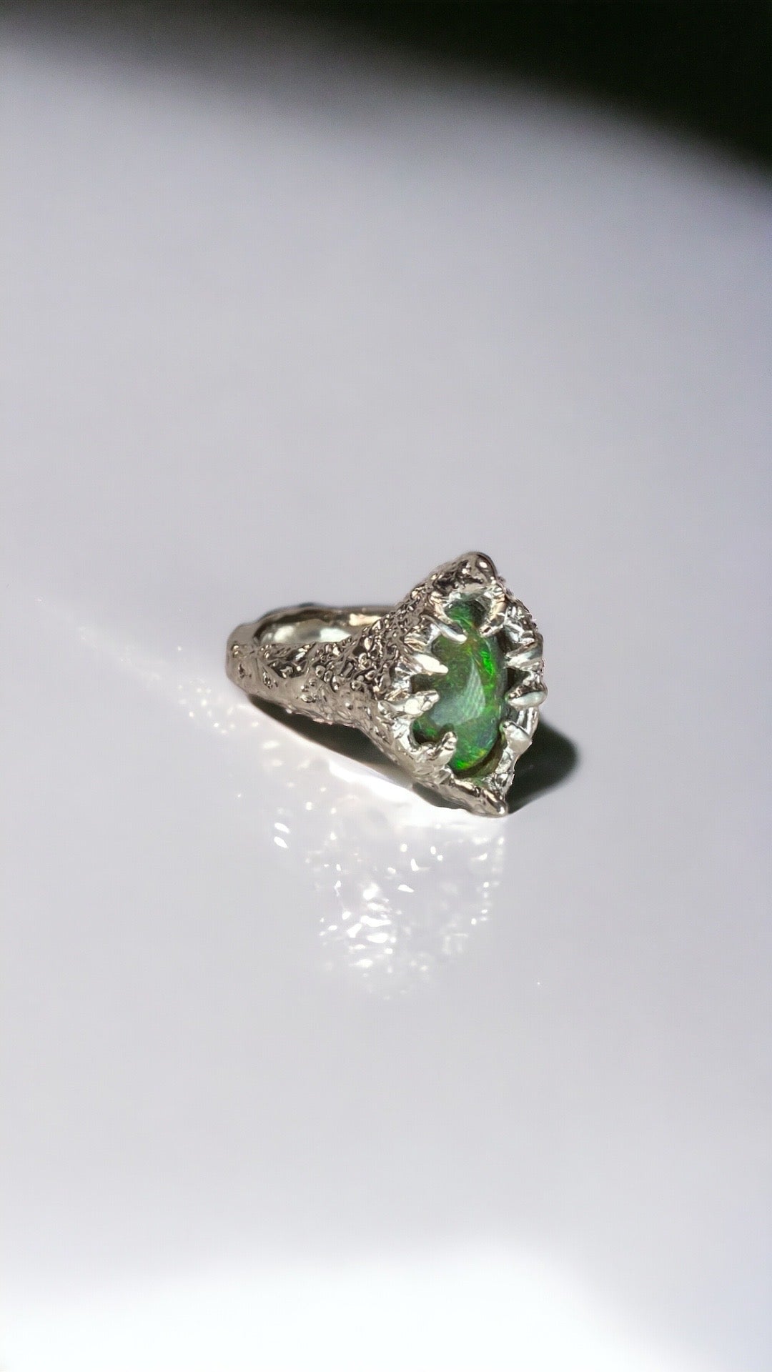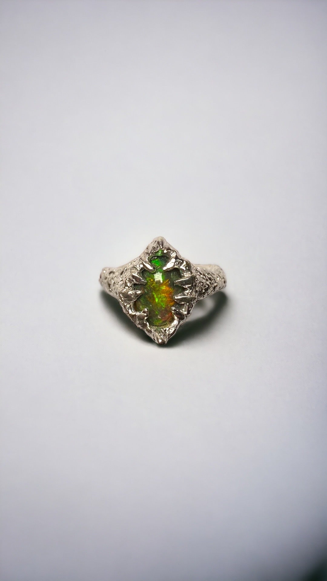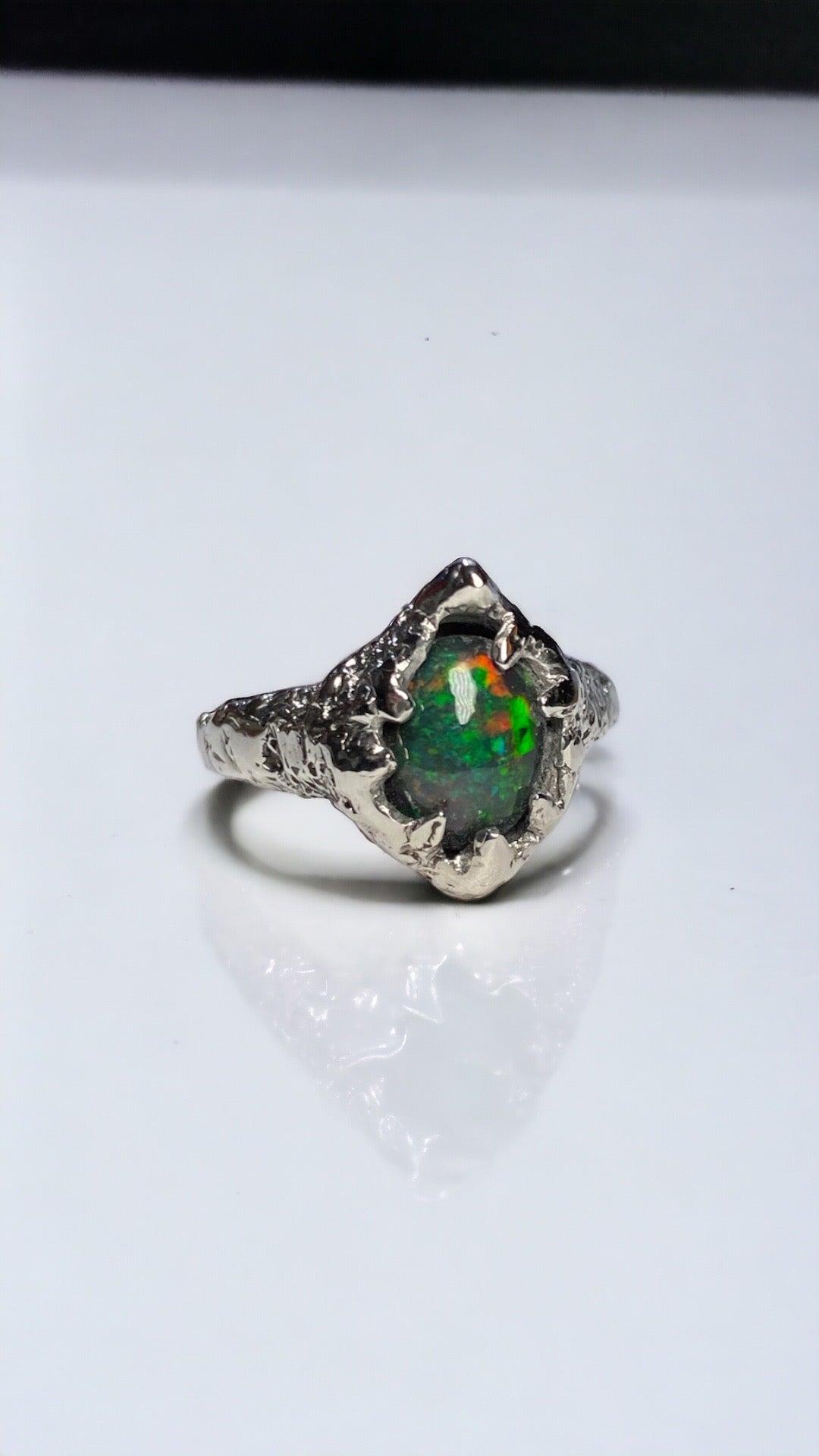 An Ethiopian opalΒ to rival an entire galaxy // Polished sterling silver with an eye catching reptilian texture